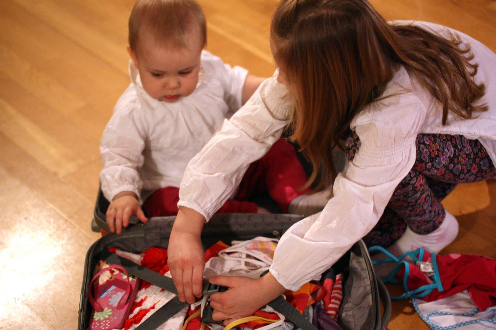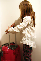 Igår fyllde Alva sin väska med saker som hon tyckte var nödvändigt, alltså bikini tre solklänningar och kläder till dockorna ;) Och hon var riktigt stolt över att ha en egen resväska den här gången... En rosa! Den blev för liten för mig i år så nu tog Alva över! Jag måste erkänna att hon var väldigt söt när hon gick och drog på den igår!